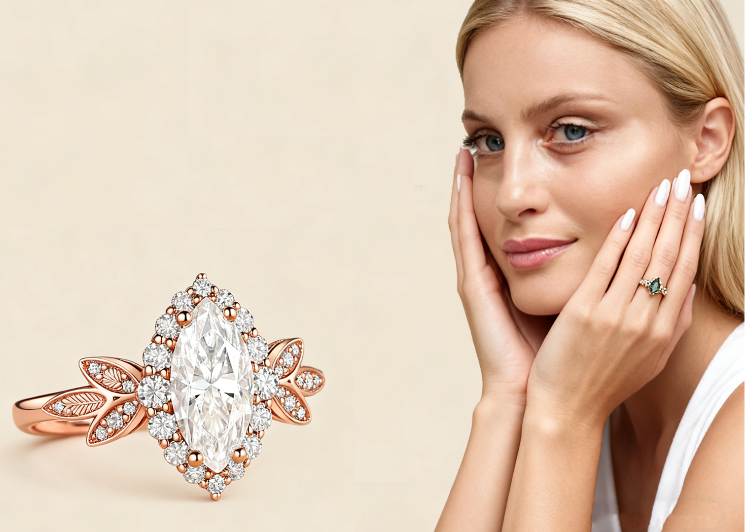 Moissanites are Lab-grown with minimal impact on the environment. Because they are grown in a controlled environment using advanced technology, moissanite does not require new mining to produce. Moissanite rings are ideal for everyday wear and will hold up amazingly well over time. Your moissanite will never cloud or tarnish, just need an occasional cleaning to maintain the original and sparkling look.
